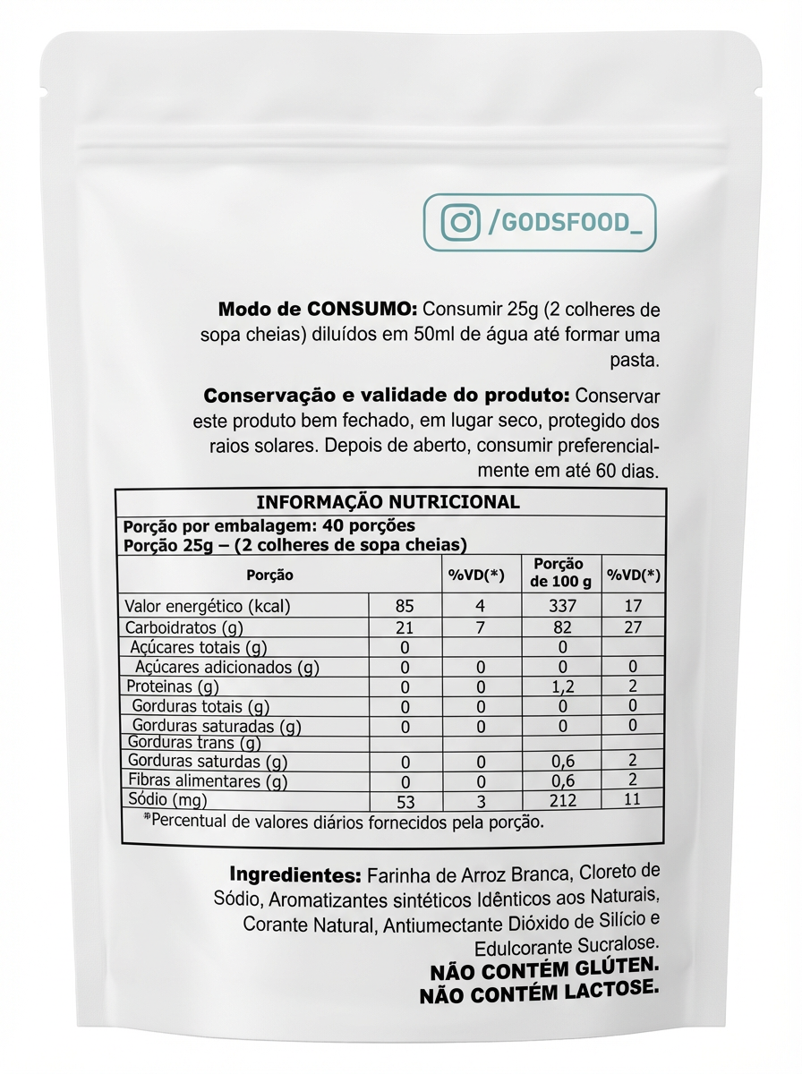 Modo de Usar (Sugestão): Misture 4 colheres (50g) em 200ml de água ou leite. Aqueça em panela ou micro-ondas até atingir a consistência desejada. Consuma principalmente no pré-treino (1-2h antes) para energia, ou no pós-treino para recuperação.